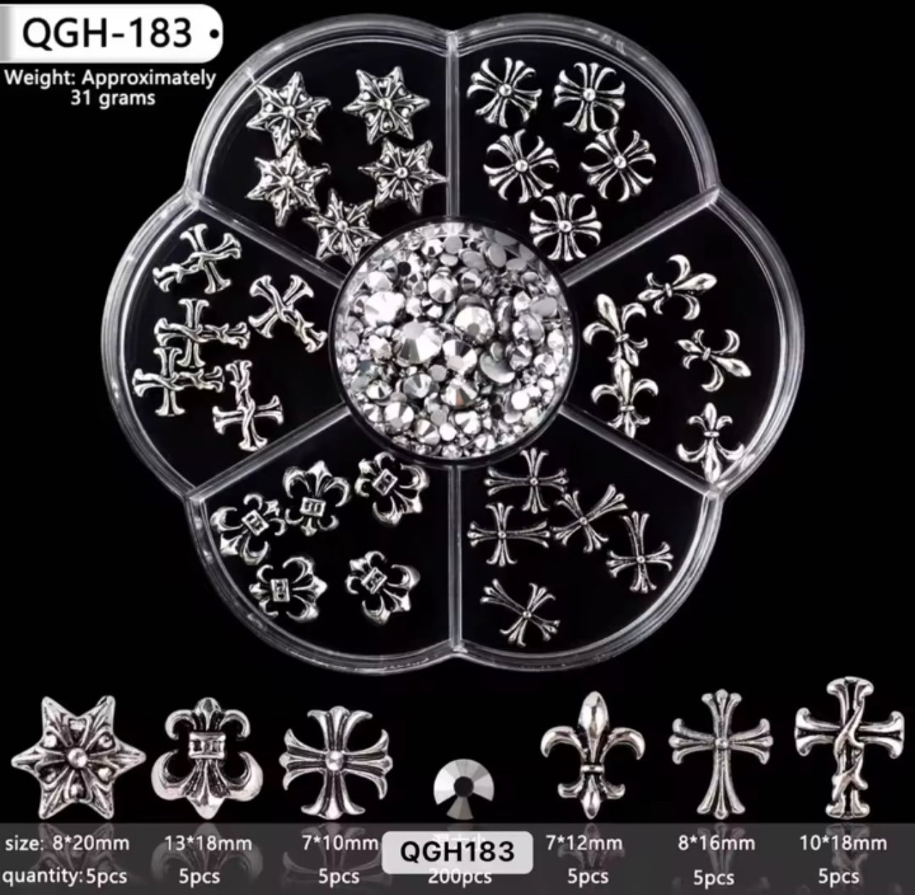 Cross & Rhinestone Nail Charm Set